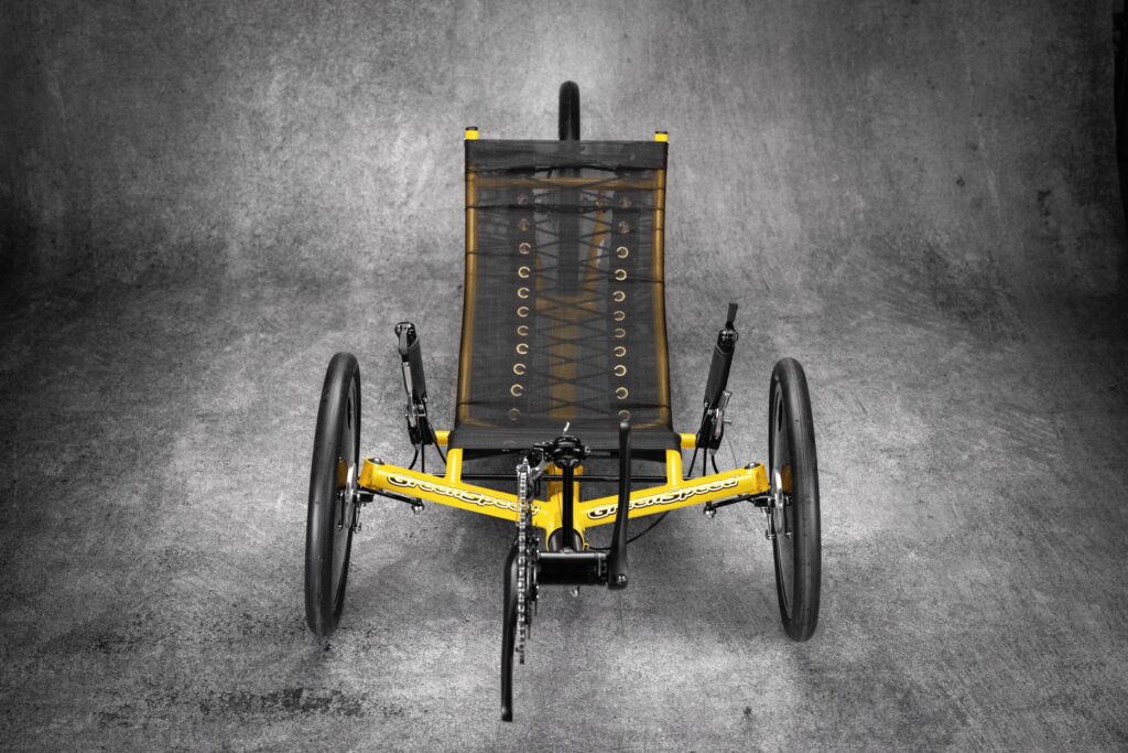 Finally, outfitted with premium componentry and custom lightweight GreenSpeed Scorcher tires, riders pilot the trike in the comfort of a classic GreenSpeed seat. With breathable mesh and adjustable, compliant shock cord.