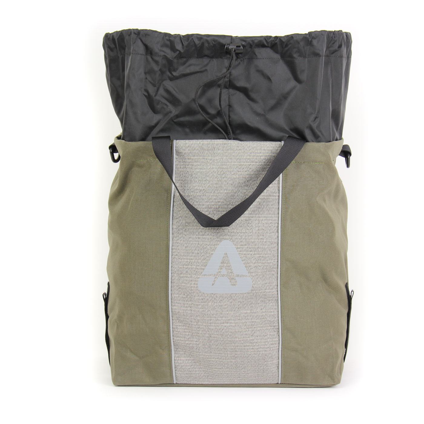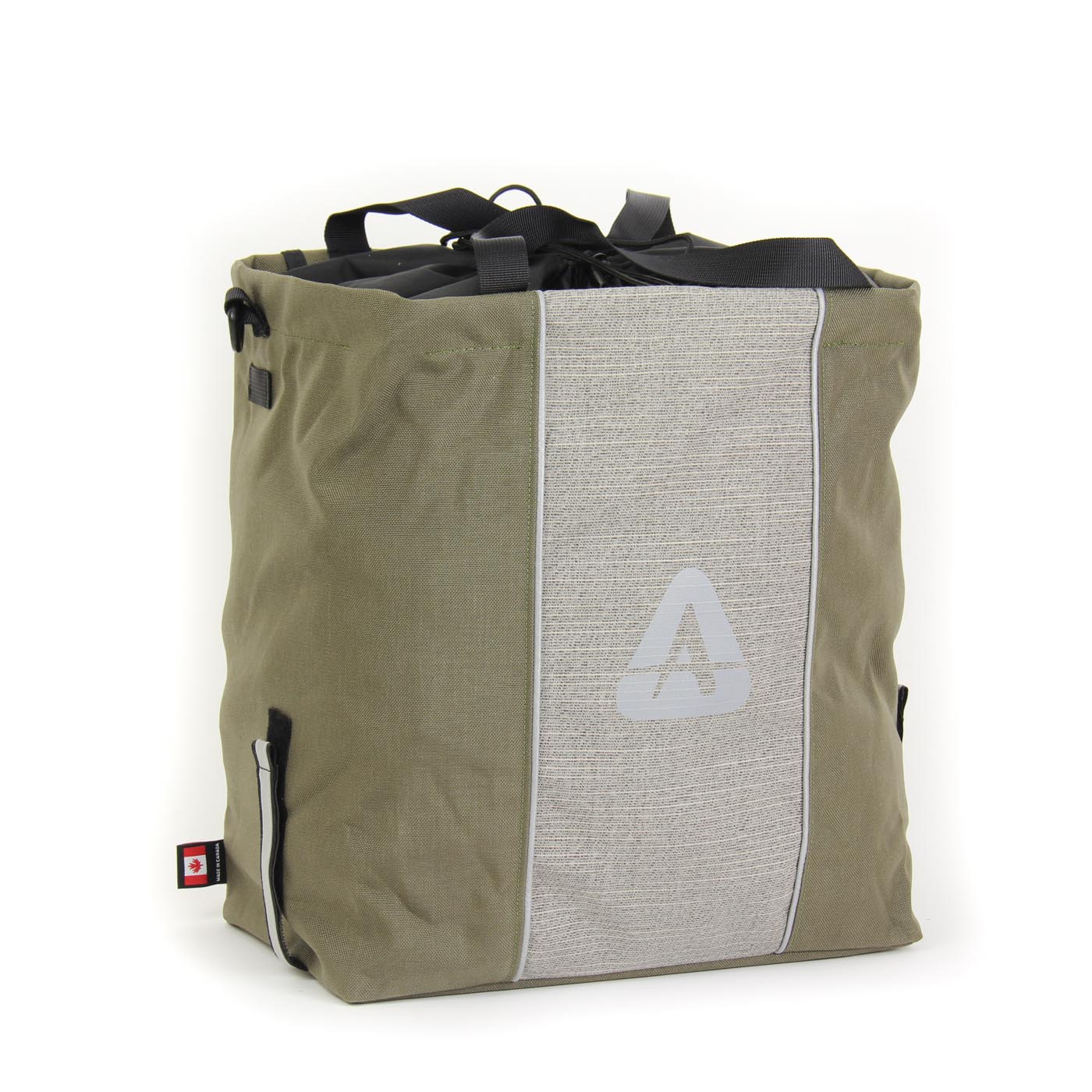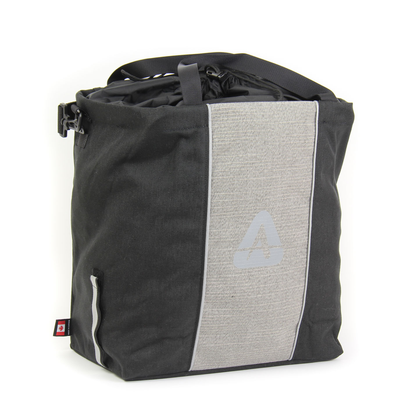 Folds tight against your rack when not in use. A drawstring sleeve extends its already spacious 1525 cubic inch capacity to 1768 cubic inches. In order to streamline this pannier and make it easier to use in an urban environment, we removed the lower hook and bungee normally included in the Cam-Lock® mounting system.