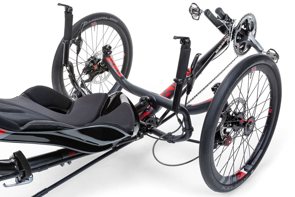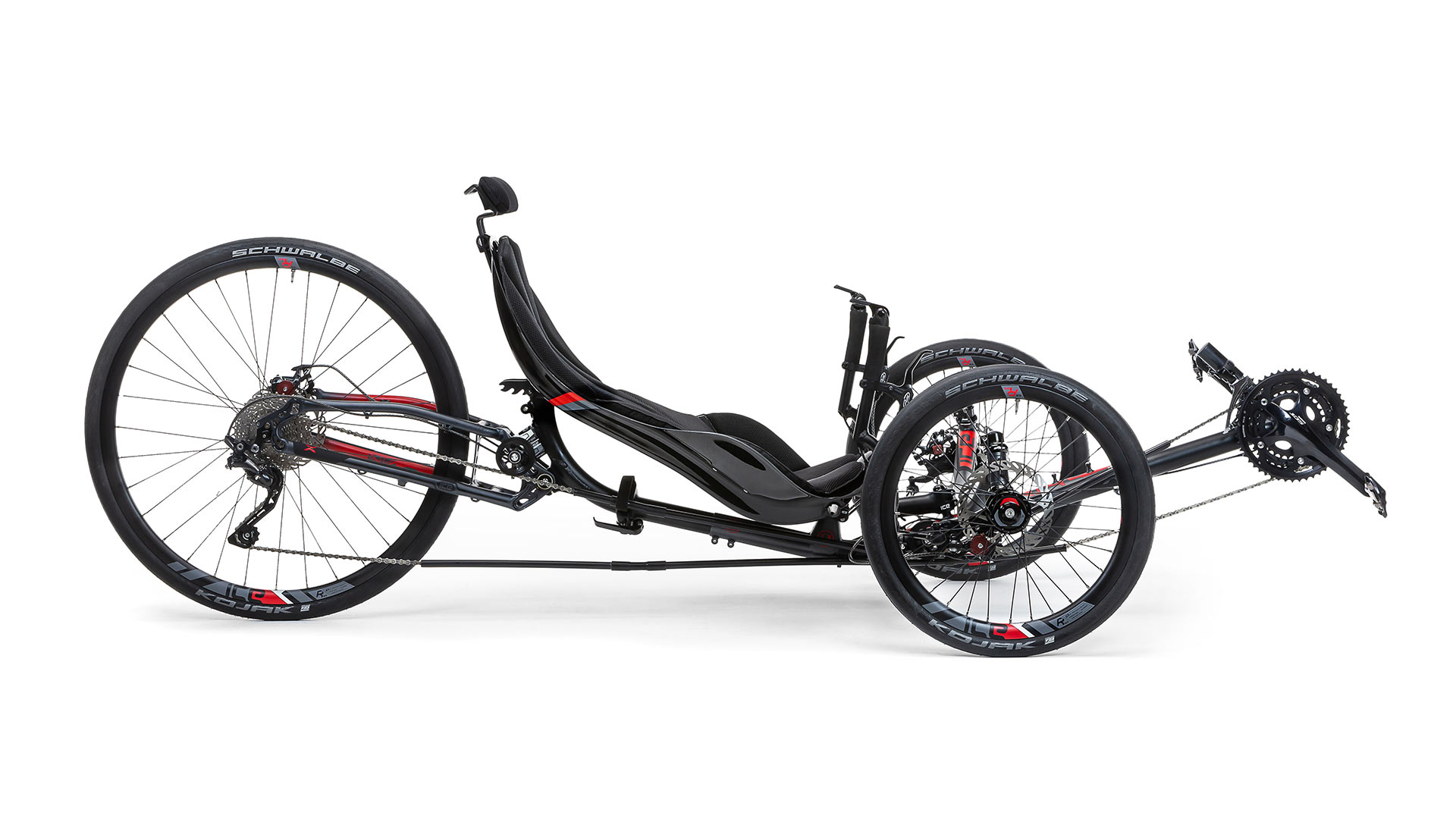 The Sprint X shares the race wheel set with its proven race winning sister trike the VTX. The black state-of-the-art, custom lightweight race wheels are lighter than the previous wheels. They are more aerodynamic in having a modern aero section profile. Tubeless-ready as standard, with a 700c rear wheel. Available in; reliable low maintenance drum or powerful lightweight disc brake options.